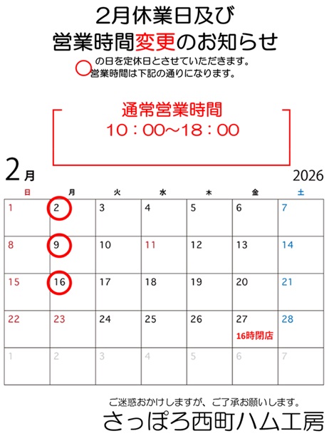 営業時間を変更する場合は公式SNSから告知致します。